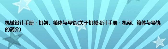 本文关于机械设计手册:机架、箱体与导轨的简介就讲解完毕,希望对大家有所帮助。