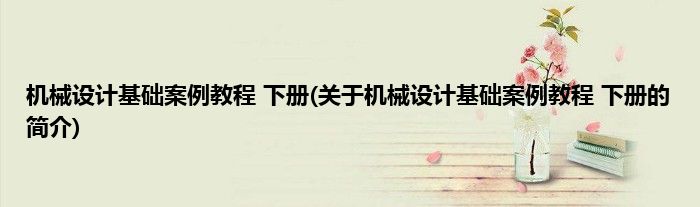本文关于机械设计基础案例教程 下册的简介就讲解完毕,希望对大家有所帮助。