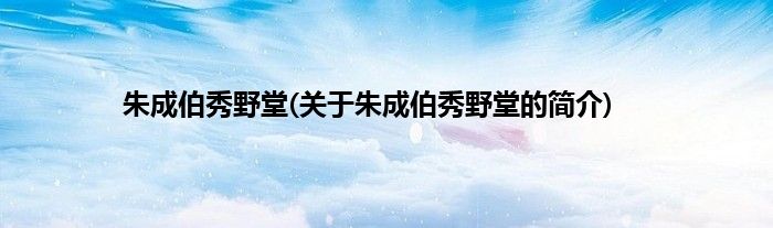 大家好,朱成伯秀野堂,关于朱成伯秀野堂的简介很多人还不知道,现在让我们一起来看看吧!