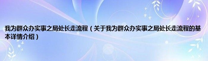 本文关于我为群众办实事之局处长走流程的基本详情介绍就讲解完毕,希望对大家有所帮助。