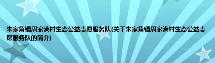 1、 朱家角镇周家港村生态公益志愿服务队是由朱家角镇生态公益志愿服务队领导下的志愿团体。