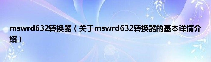 本文关于mswrd632转换器的基本详情介绍就讲解完毕,希望对大家有所帮助。