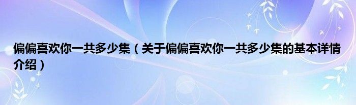 本文关于偏偏喜欢你一共多少集的基本详情介绍就讲解完毕,希望对大家有所帮助。