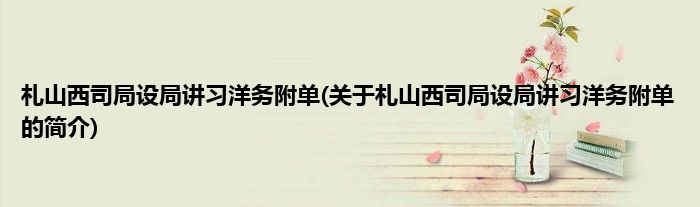 本文关于札山西司局设局讲习洋务附单的简介就讲解完毕,希望对大家有所帮助。