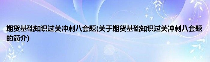 本文关于期货基础知识过关冲刺八套题的简介就讲解完毕,希望对大家有所帮助。