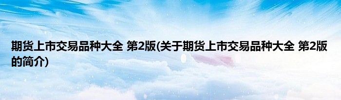 本文关于期货上市交易品种大全 第2版的简介就讲解完毕,希望对大家有所帮助。