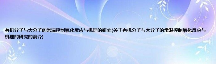 本文关于有机分子与大分子的常温控制氧化反应与机理的研究的简介就讲解完毕,希望对大家有所帮助。