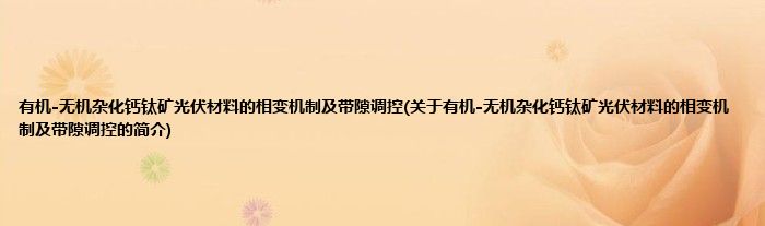 本文关于有机-无机杂化钙钛矿光伏材料的相变机制及带隙调控的简介就讲解完毕,希望对大家有所帮助。