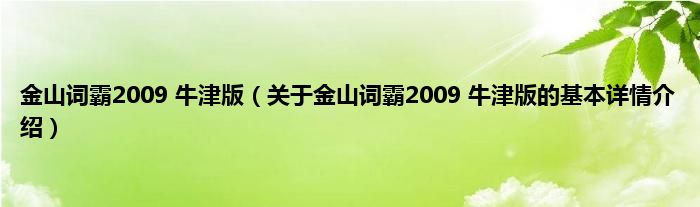 本文关于金山词霸2009 牛津版的基本详情介绍就讲解完毕,希望对大家有所帮助。