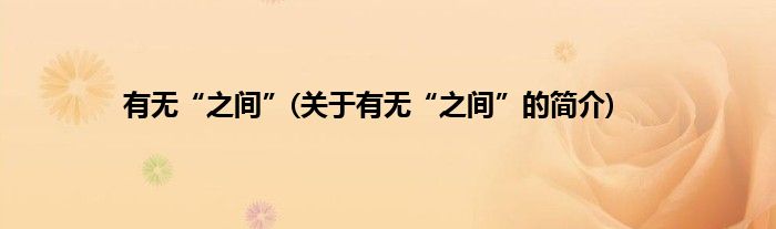 大家好,有无“之间”,关于有无“之间”的简介很多人还不知道,现在让我们一起来看看吧!