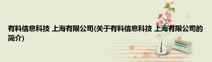 大家好,有料信息科技 上海有限公司,关于有料信息科技 上海有限公司的简介很多人还不知道,现在让我们一起来看看吧!