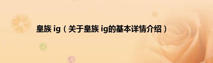本文关于皇族 ig的基本详情介绍就讲解完毕,希望对大家有所帮助。