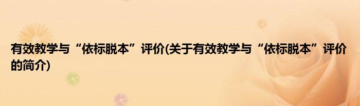本文关于有效教学与“依标脱本”评价的简介就讲解完毕,希望对大家有所帮助。