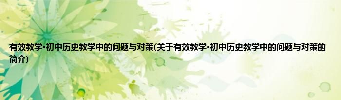 本文关于有效教学·初中历史教学中的问题与对策的简介就讲解完毕,希望对大家有所帮助。
