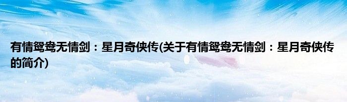 本文关于有情鸳鸯无情剑:星月奇侠传的简介就讲解完毕,希望对大家有所帮助。