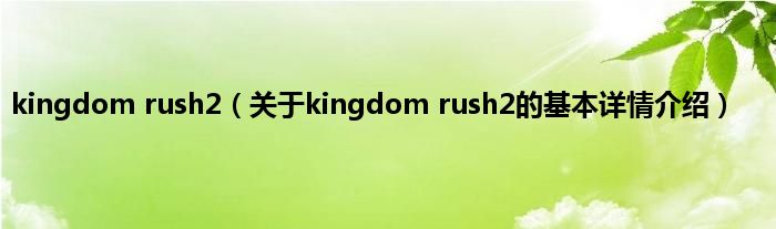 本文关于kingdom rush2的基本详情介绍就讲解完毕,希望对大家有所帮助。