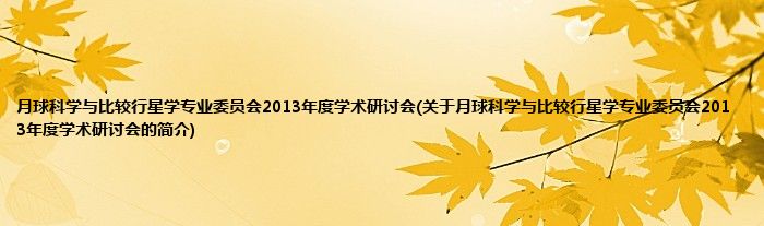 本文关于月球科学与比较行星学专业委员会2013年度学术研讨会的简介就讲解完毕,希望对大家有所帮助。