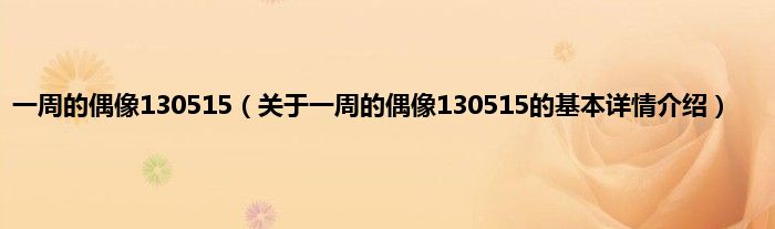 一周的偶像130515(关于一周的偶像130515的基本详情介绍)