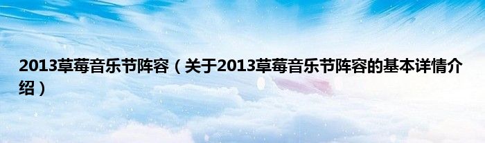 本文关于2013草莓音乐节阵容的基本详情介绍就讲解完毕,希望对大家有所帮助。