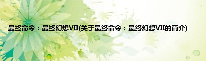 本文关于最终命令:最终幻想VII的简介就讲解完毕,希望对大家有所帮助。