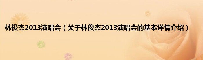 本文关于林俊杰2013演唱会的基本详情介绍就讲解完毕,希望对大家有所帮助。