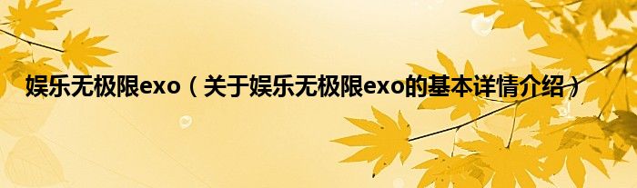 本文关于娱乐无极限exo的基本详情介绍就讲解完毕,希望对大家有所帮助。
