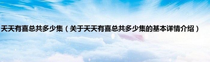 本文关于天天有喜总共多少集的基本详情介绍就讲解完毕,希望对大家有所帮助。