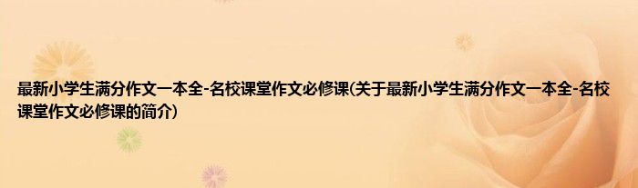本文关于最新小学生满分作文一本全-名校课堂作文必修课的简介就讲解完毕,希望对大家有所帮助。