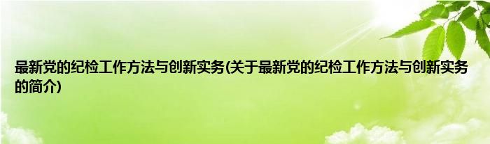 本文关于最新党的纪检工作方法与创新实务的简介就讲解完毕,希望对大家有所帮助。