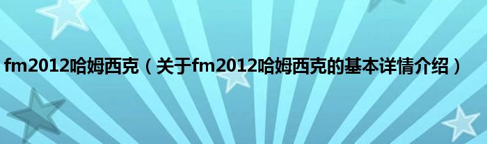 本文关于fm2012哈姆西克的基本详情介绍就讲解完毕,希望对大家有所帮助。