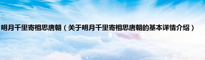 本文关于明月千里寄相思唐朝的基本详情介绍就讲解完毕,希望对大家有所帮助。