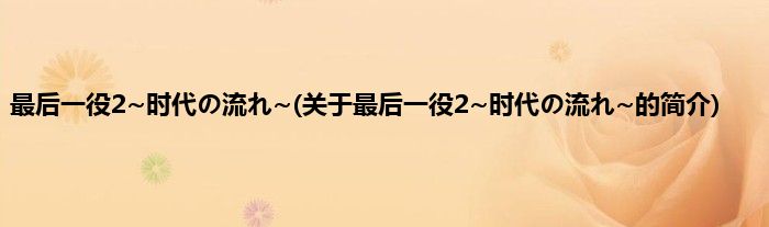 本文关于最后一役2~时代の流れ~的简介就讲解完毕,希望对大家有所帮助。