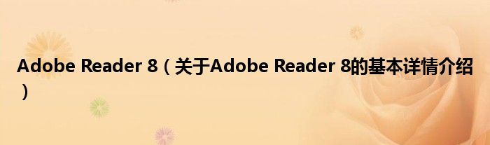 大家好我是小蝌蚪,Adobe Reader 8,关于Adobe Reader 8的基本详情介绍很多人还不知道,那么现在让我们一起来看看吧!