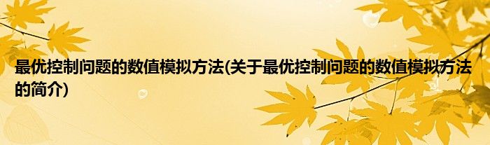 本文关于最优控制问题的数值模拟方法的简介就讲解完毕,希望对大家有所帮助。