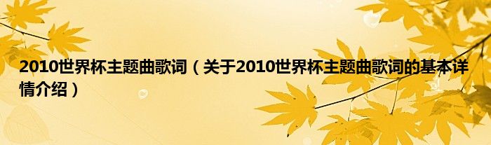 本文关于2010世界杯主题曲歌词的基本详情介绍就讲解完毕,希望对大家有所帮助。