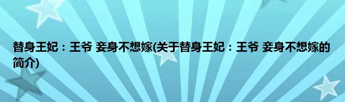 本文关于替身王妃:王爷,妾身不想嫁的简介就讲解完毕,希望对大家有所帮助。