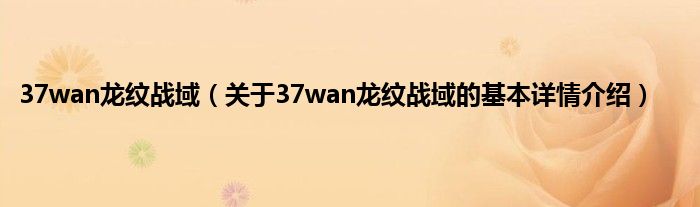本文关于37wan龙纹战域的基本详情介绍就讲解完毕,希望对大家有所帮助。
