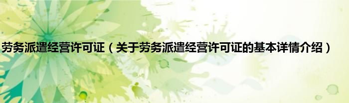 本文关于劳务派遣经营许可证的基本详情介绍就讲解完毕,希望对大家有所帮助。