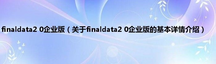 本文关于finaldata2 0企业版的基本详情介绍就讲解完毕,希望对大家有所帮助。