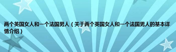 本文关于两个英国女人和一个法国男人的基本详情介绍就讲解完毕,希望对大家有所帮助。