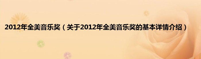 本文关于2012年全美音乐奖的基本详情介绍就讲解完毕,希望对大家有所帮助。