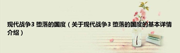 本文关于现代战争3 堕落的国度的基本详情介绍就讲解完毕,希望对大家有所帮助。