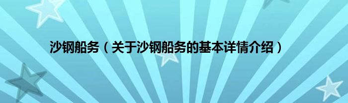 本文关于沙钢船务的基本详情介绍就讲解完毕,希望对大家有所帮助。