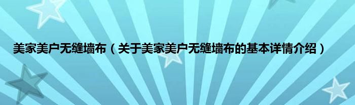 本文关于美家美户无缝墙布的基本详情介绍就讲解完毕,希望对大家有所帮助。