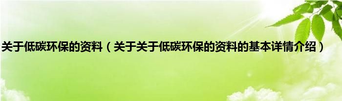 本文关于关于低碳环保的资料的基本详情介绍就讲解完毕,希望对大家有所帮助。