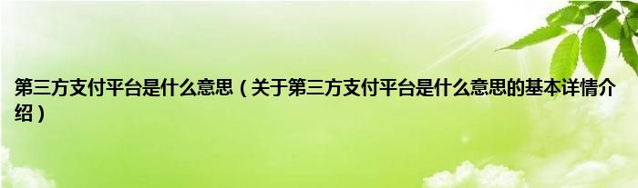本文关于第三方支付平台是什么意思的基本详情介绍就讲解完毕,希望对大家有所帮助。