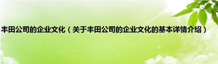本文关于丰田公司的企业文化的基本详情介绍就讲解完毕,希望对大家有所帮助。