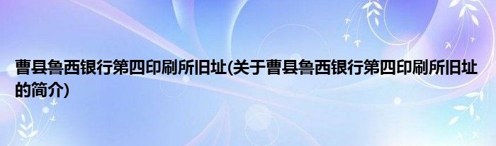 本文关于曹县鲁西银行第四印刷所旧址的简介就讲解完毕,希望对大家有所帮助。