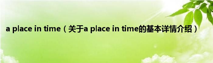 本文关于a place in time的基本详情介绍就讲解完毕,希望对大家有所帮助。