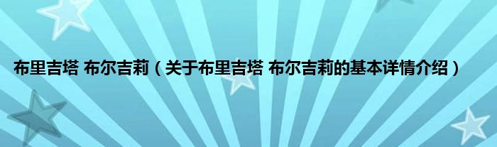 本文关于布里吉塔 布尔吉莉的基本详情介绍就讲解完毕,希望对大家有所帮助。